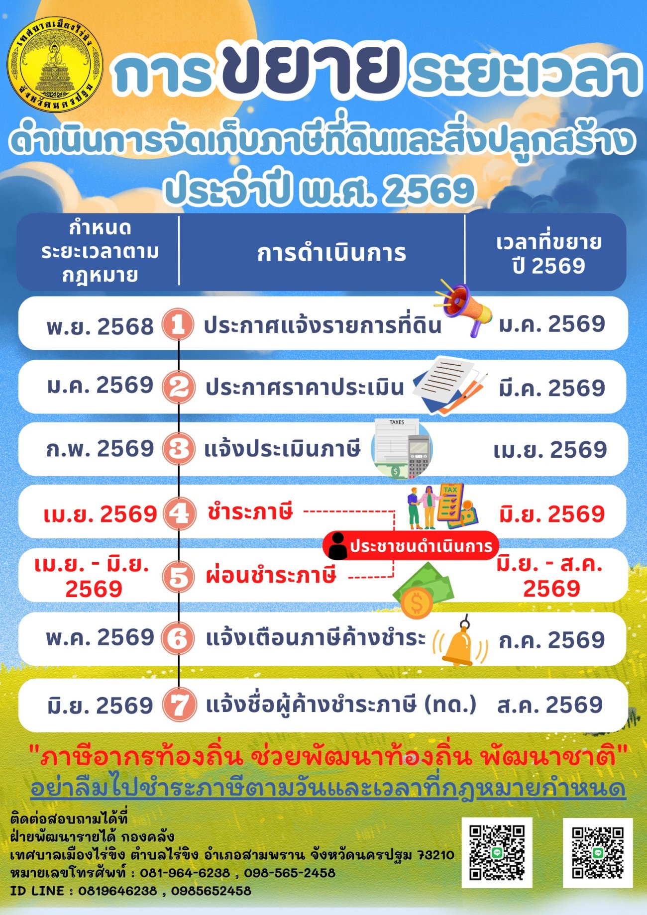 ขยายกำหนดเวลาดำเนินการตามพระราชบัญญัติภาษีที่ดินและสิ่งปลูกสร้าง พ.ศ. 2562 ประจำปี พ.ศ. 2569